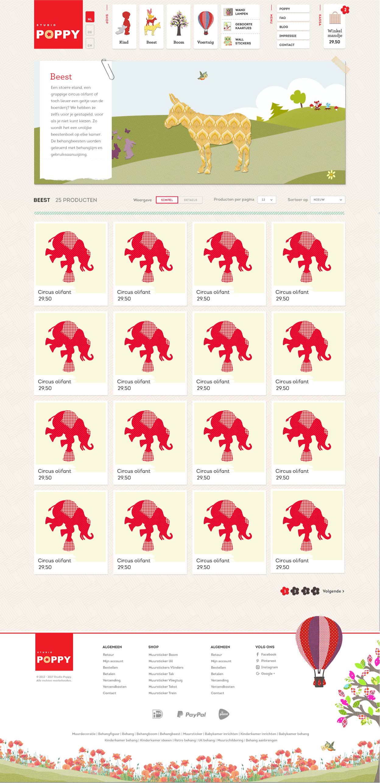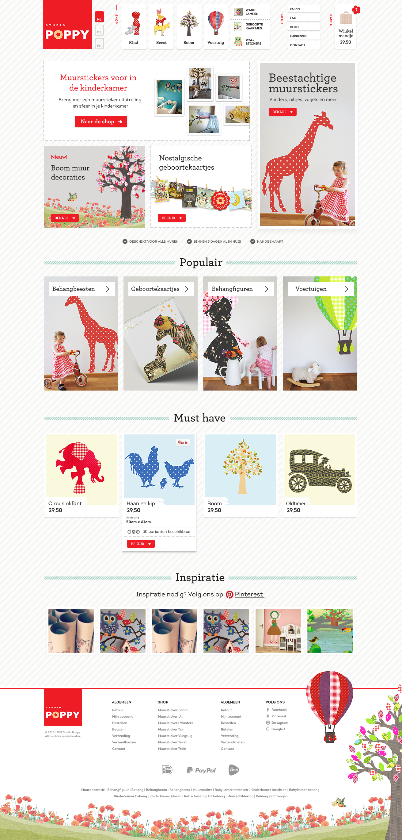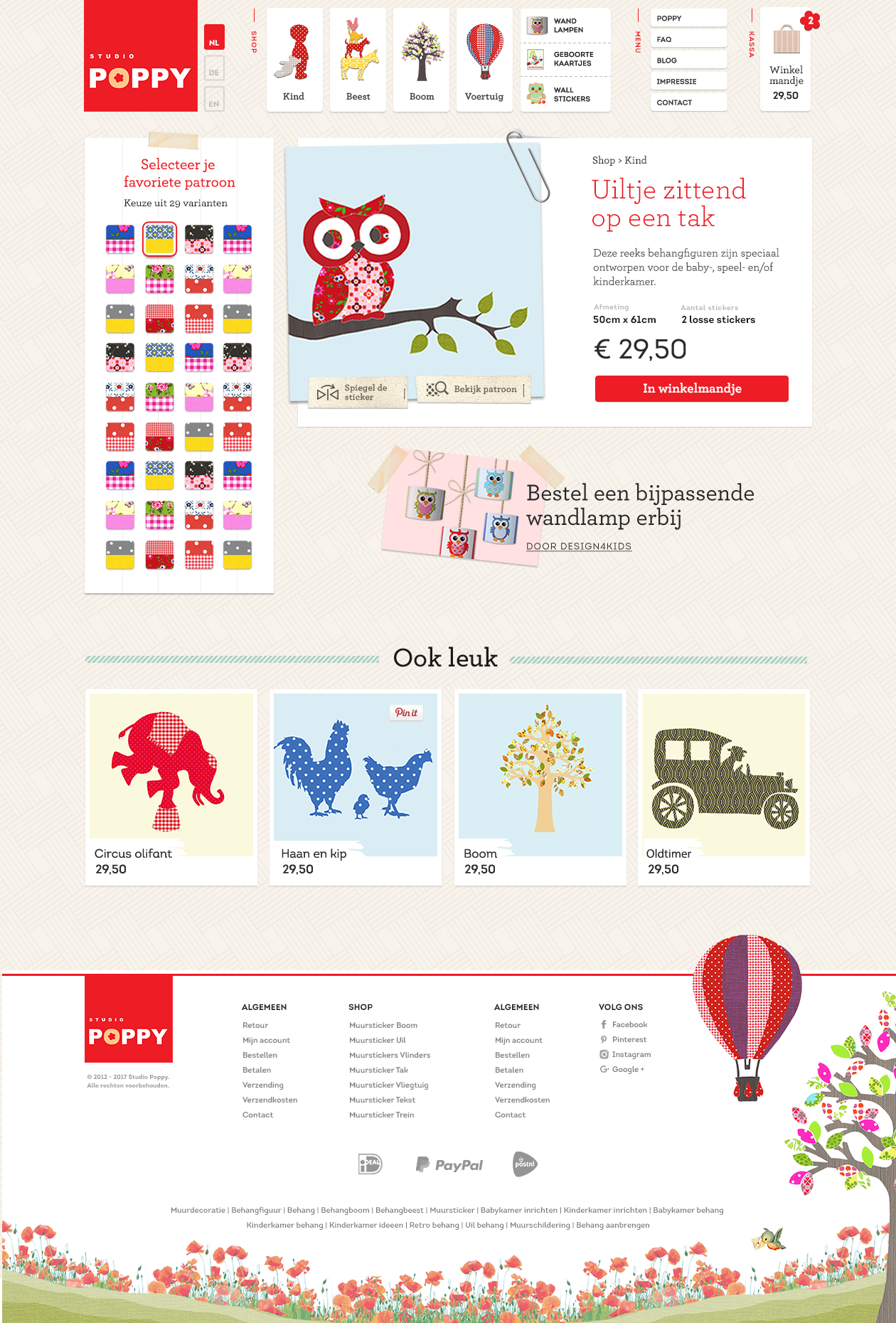 Studio Poppy Ontwerp voor een webshop voor muurstickers voor kinderkamers 01 — Home pagina 02 — Detailpagina 03 — shoplpagina